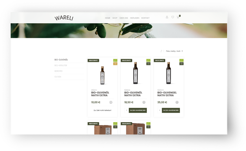 | Kunde | Wareli - Spezialist für Olivenöl, Kräuter und Tee aus Griechenland |