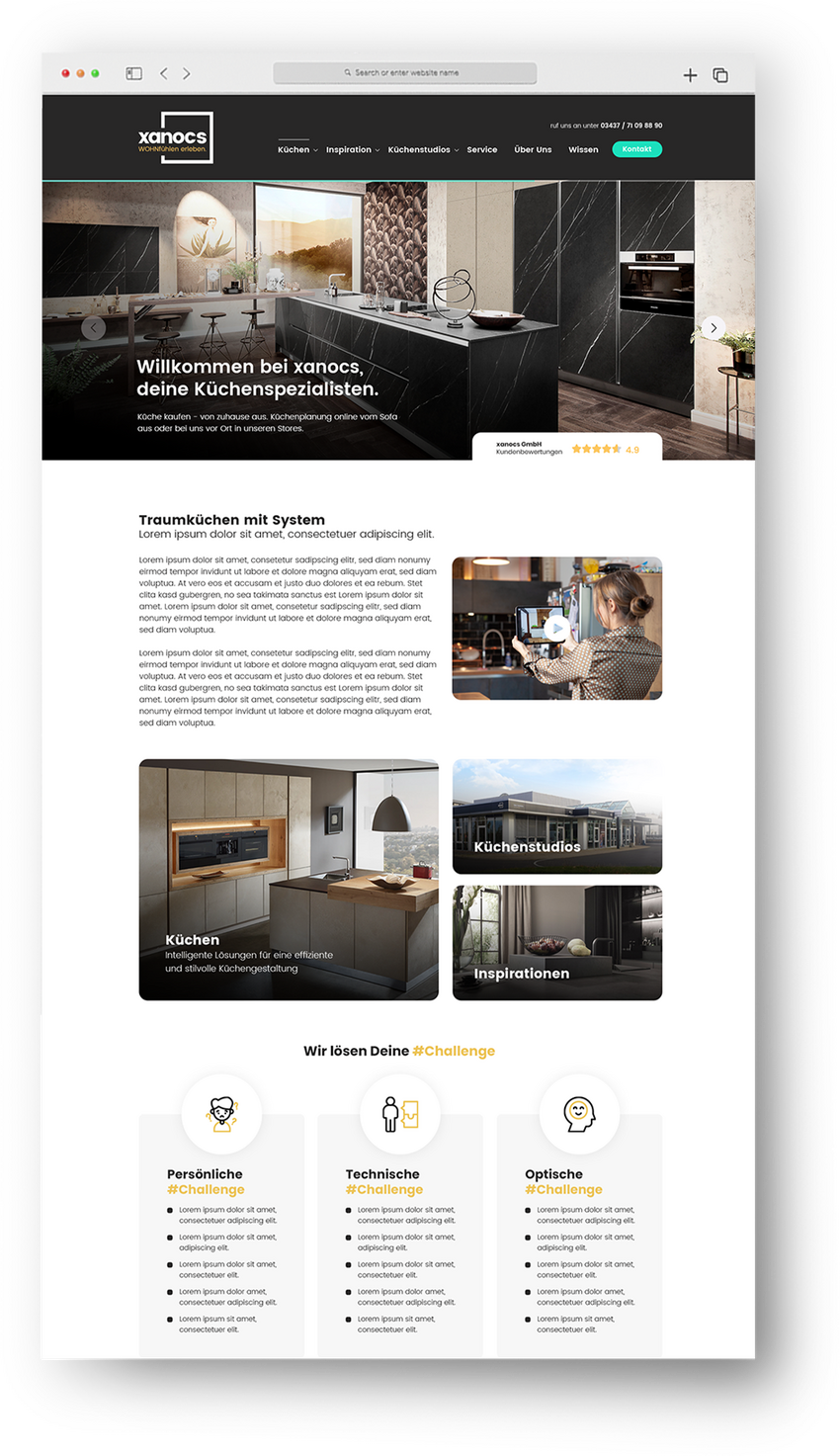 Wir entwickelten ein stilvolles und modernes Design für die Webseite von Xanocs, das die Hochwertigkeit und Eleganz ihrer Küchenlösungen widerspiegelt. Dabei lag der Fokus auf klaren Strukturen und einer benutzerfreundlichen Optik, die die Kernwerte des Unternehmens visuell unterstützt.